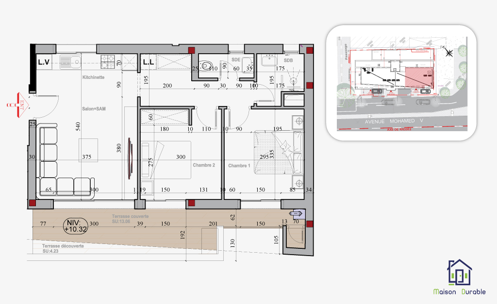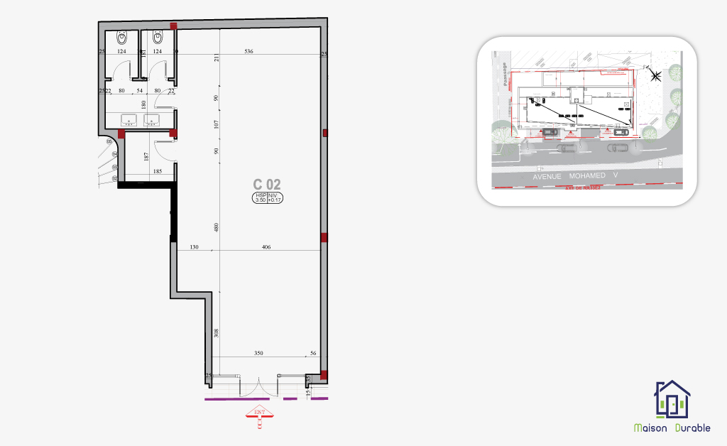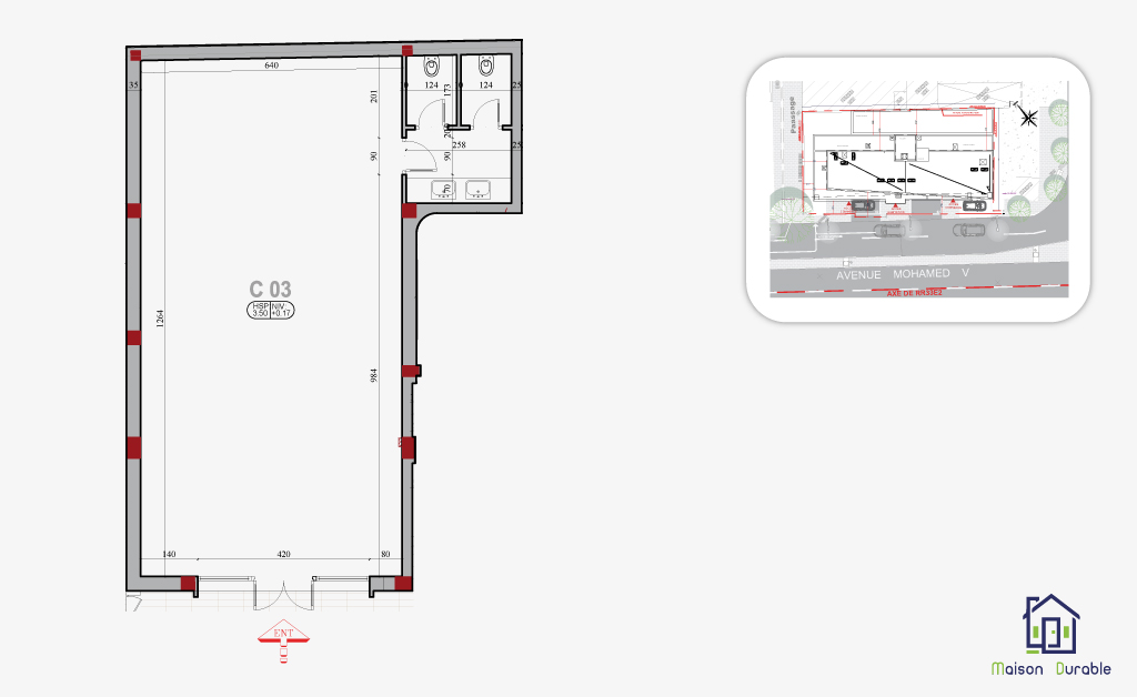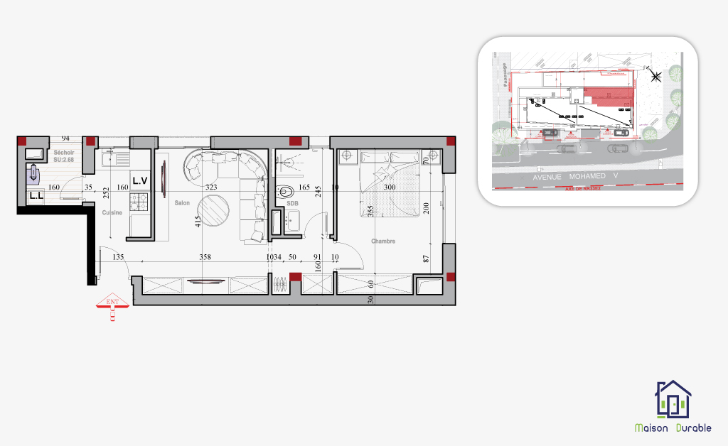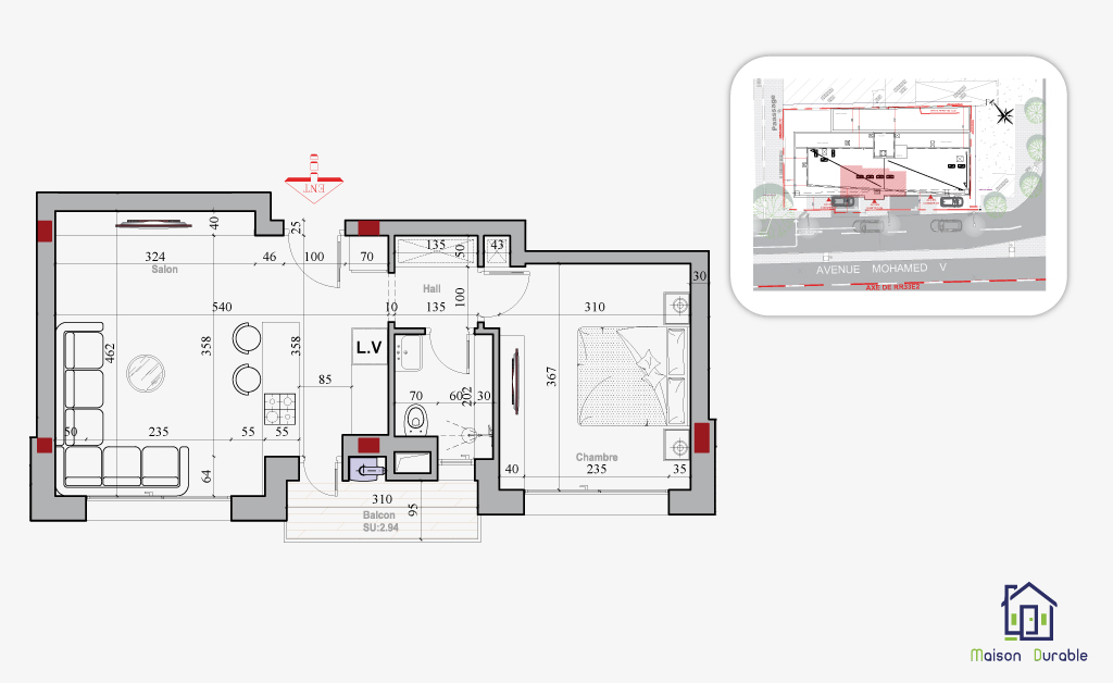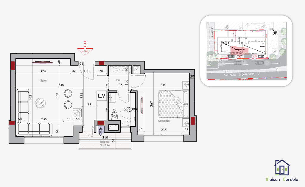 Tous les appartements disposent d’espaces extérieurs (terrasses ou balcons) et ont tous au moins une ouverture sur l’avenue Mohamed V.